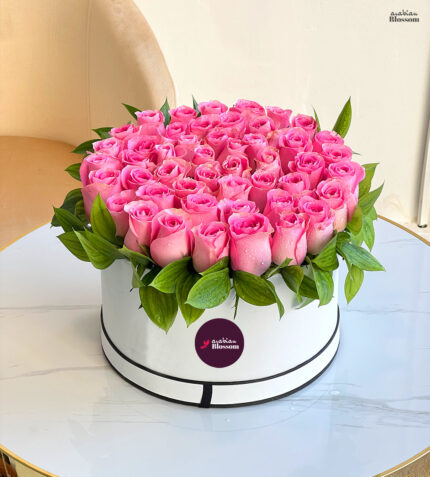 50 pink roses in a box – It’s Girl Newborn Flowers