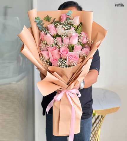Happy Birthday Flowers – Elegant Arabian 20 Pink Roses – Mixed Bouquets – It’s a Girl