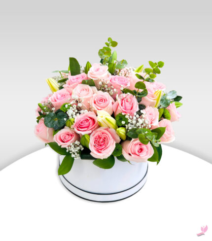 Flowers in Box – Arabianblossom – Pink Roses And Lilies – Same Day Delivery