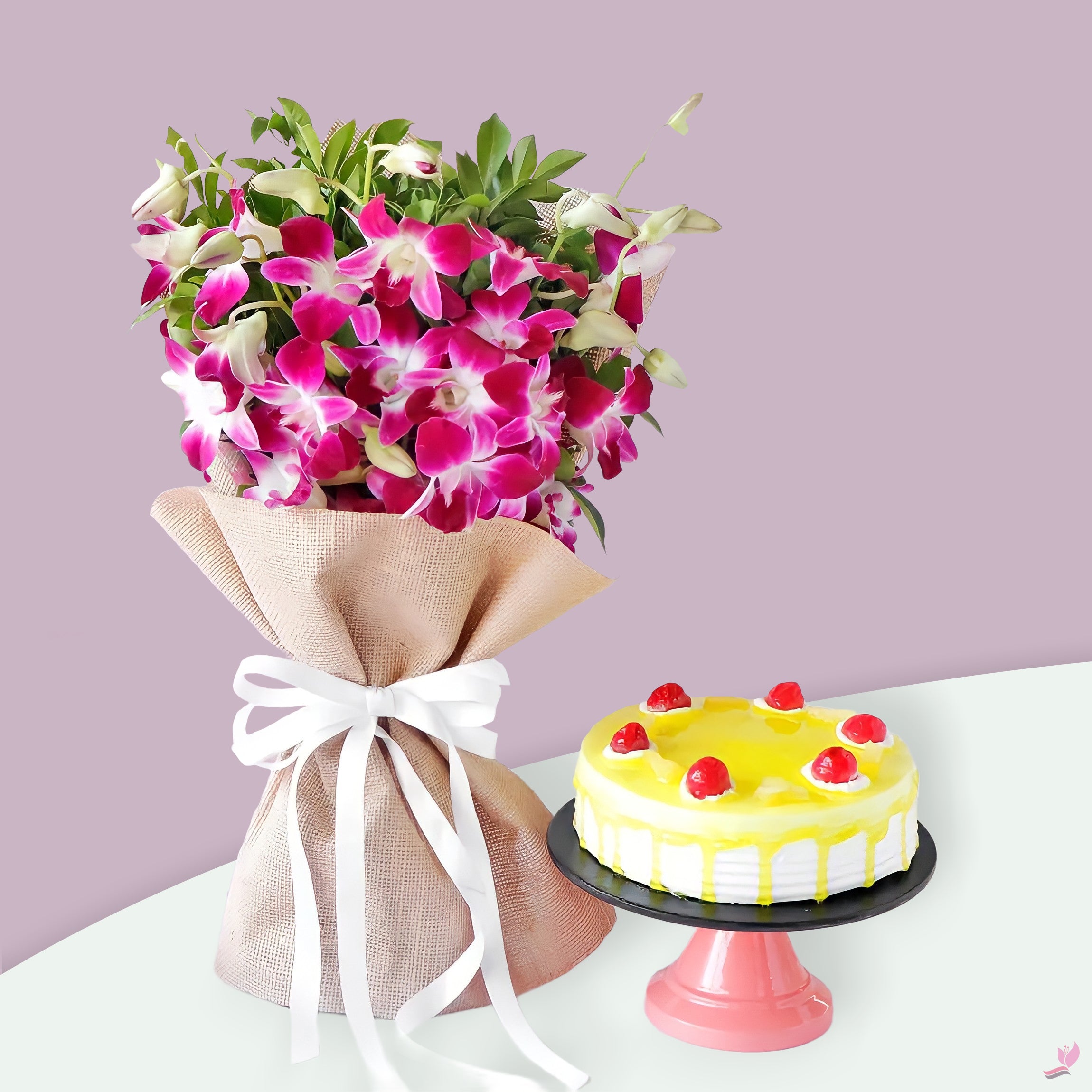 Purple Orchid 10 stems & 1 Kg Mango flavor cake