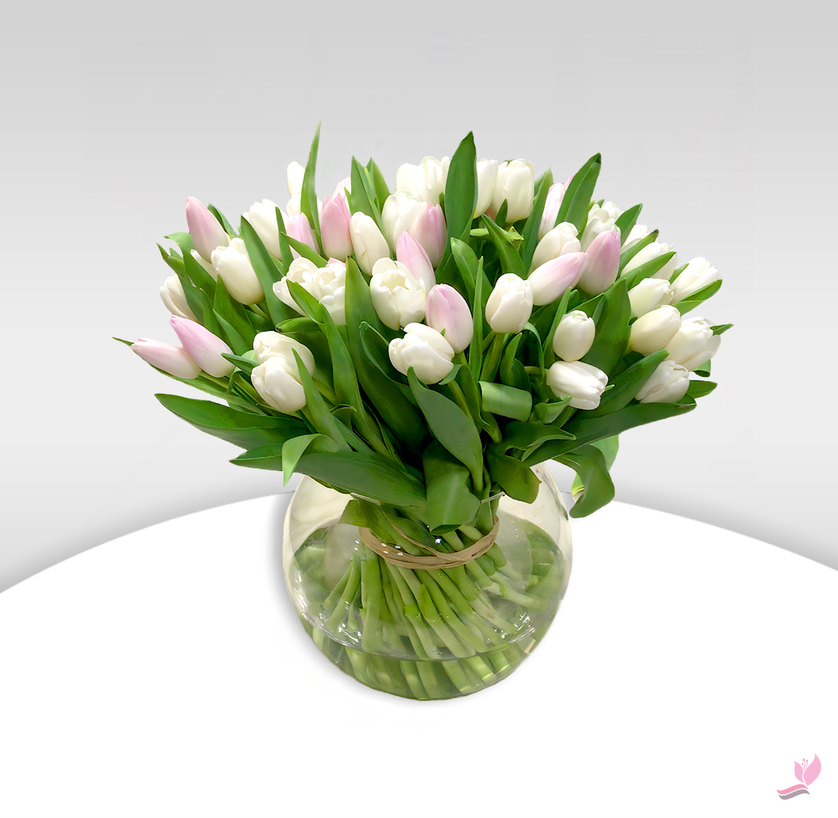 - 100 stems of white and pink tulips for a colorful and vibrant display