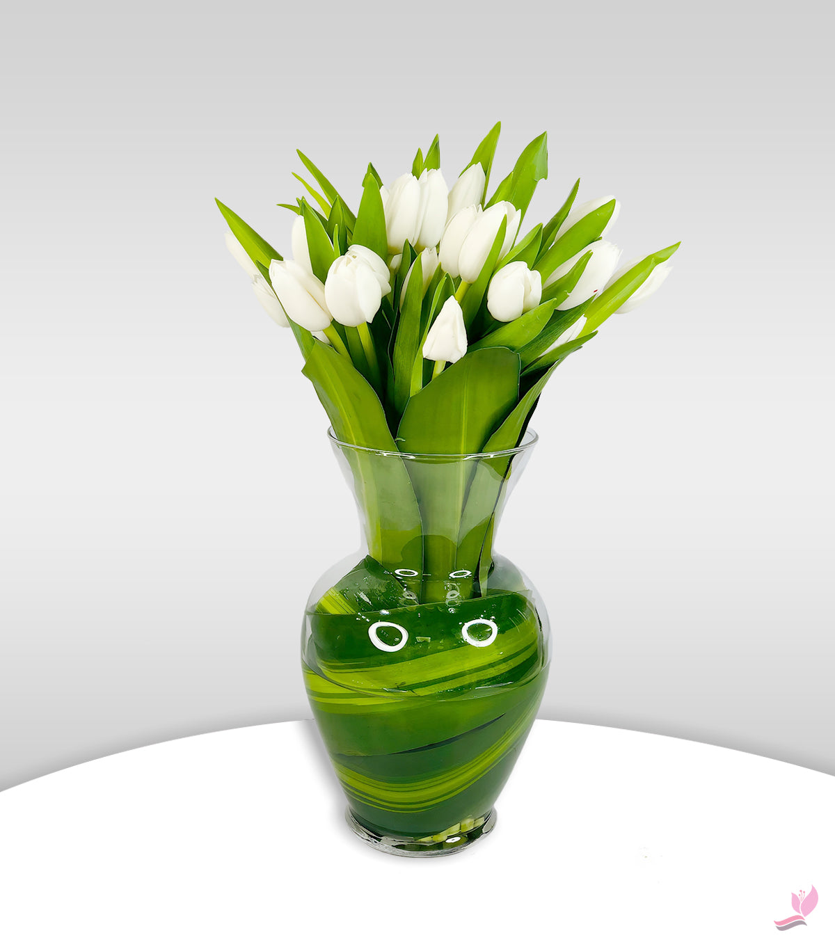 20 Fresh Stems of White Tulips in a Vase for Weddings, Anniversaries, and Elegant Home Décor