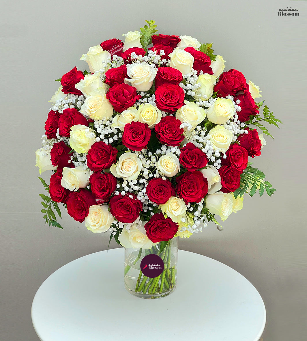 60 Stems of White and Red Roses Mix for Anniversaries & Romantic Gifting
