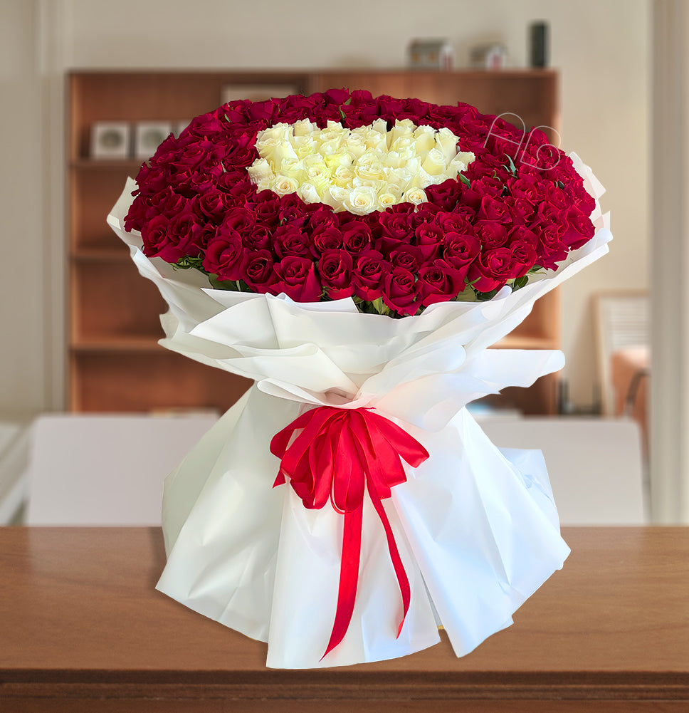 Arabian Luxury Bouquet – 150 Stems of Red Roses and 50 Stems of White Roses