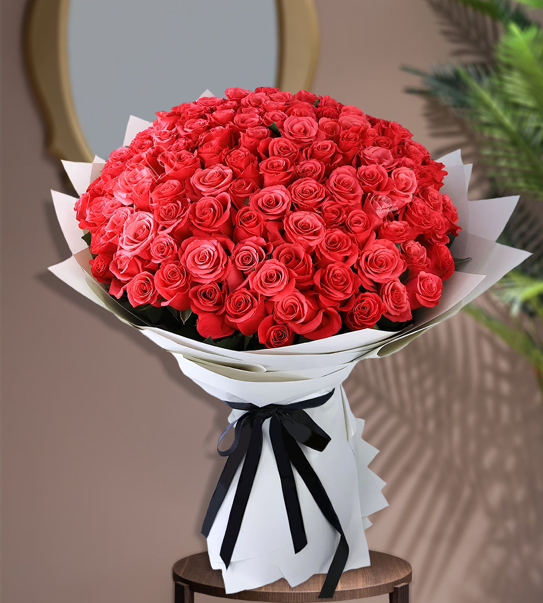 Arabian Red Bloom – 100 Stems of Red Roses – Fresh Cut Flowers
