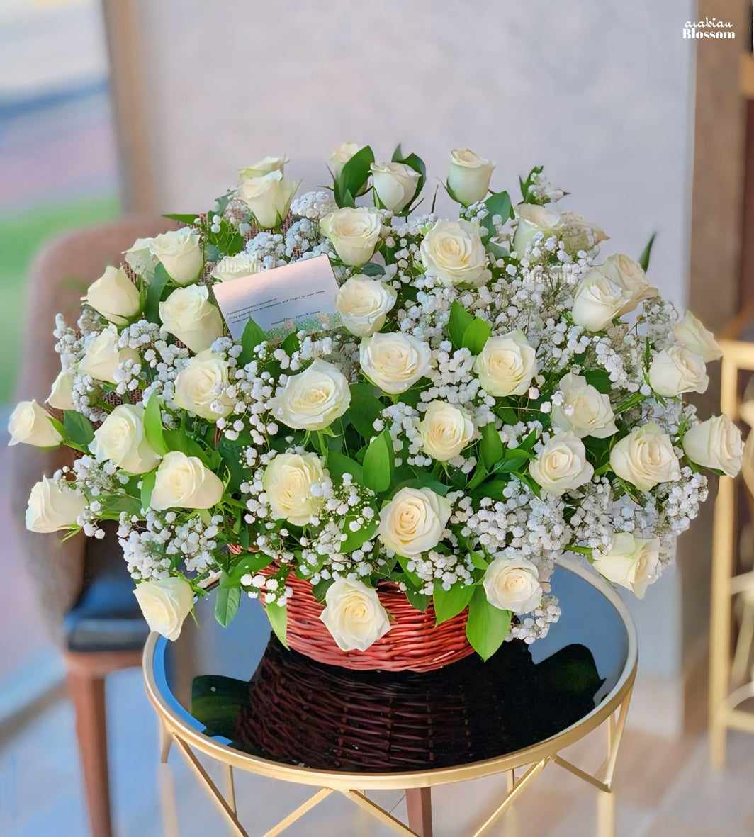 Basket of 40 White Roses – Arabianblossom – Fresh Cut Flowers