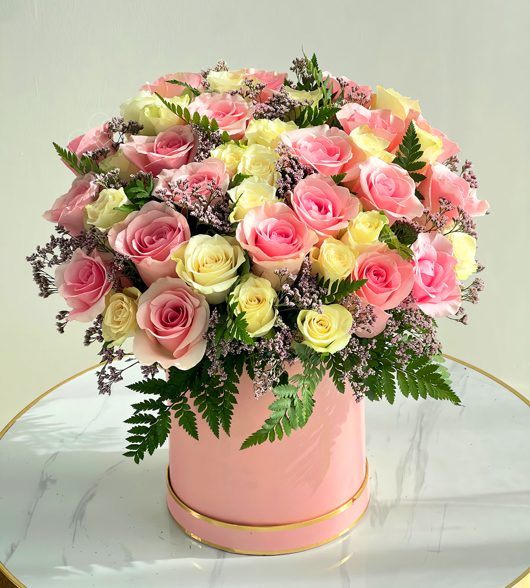Whether you’re a floral enthusiast or a novice, our Blossom in a Box of Pink and White Roses bouquet is the ideal choice for expressing your love, gratitude, or appreciation to a loved one or friend. So why wait? Order your Arabianblossom Blossom in a Box of Pink and White Roses bouquet today and experience the ultimate in floral beauty and quality!