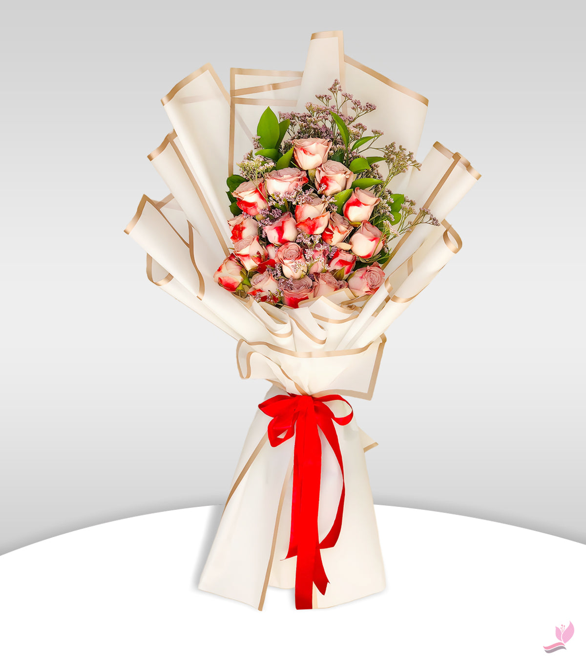 - Bouquet of 20 stems of two-toned pink roses in a nice wrapping