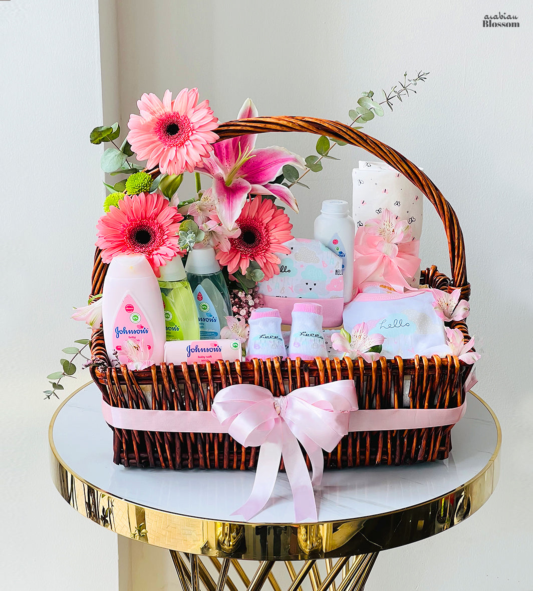 Gift Hamper Girl – Newborn Flowers + Gift Hamper