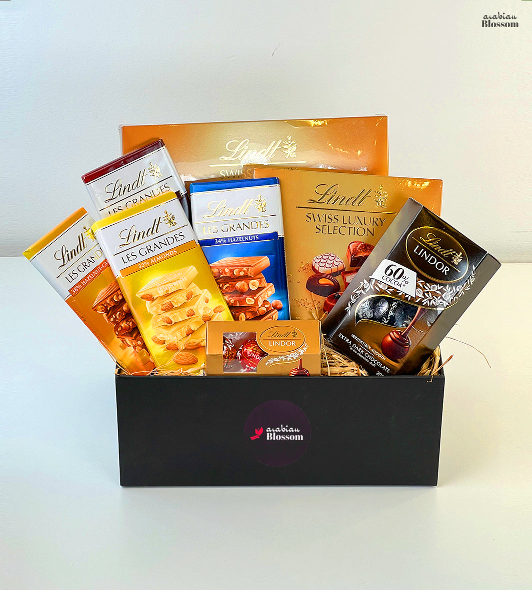Box of Mix Lindt collection chocolates in a black box