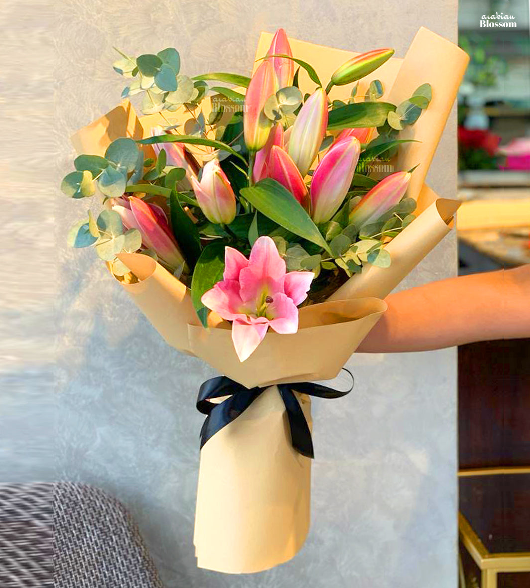 Pink Lilies Bouquet for Celebrations, Newborns, & Baby Showers