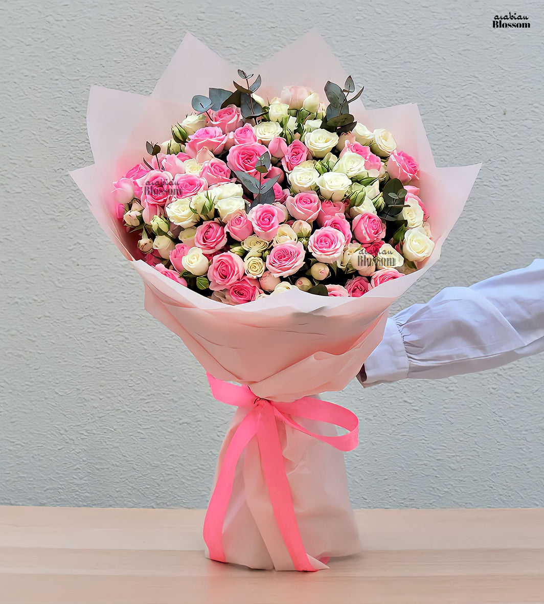 Pink & White Spray Roses Bouquet – 50 Stems – for Baby Showers, Birthdays & Romantic Gestures