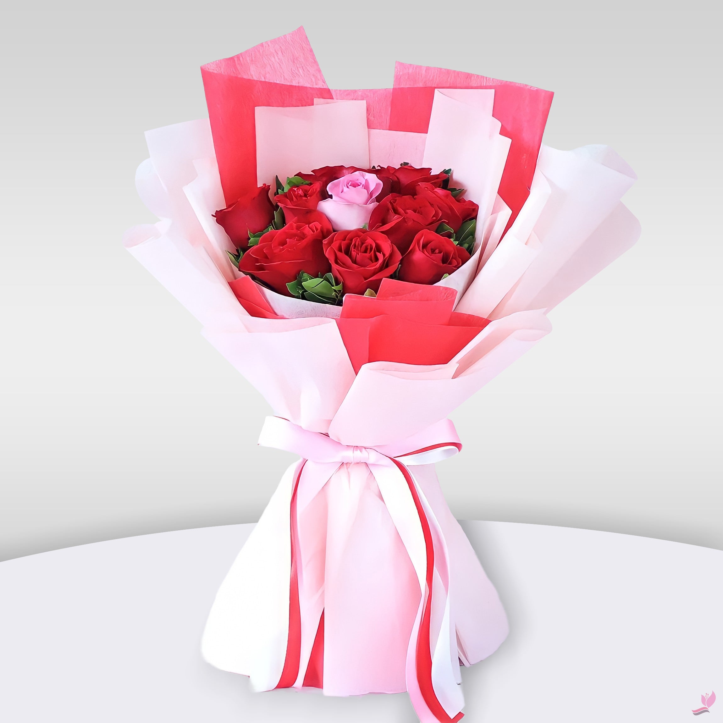 The Amor – Bouquet of 9 Red Roses & 1 Pink Rose for Romantic Gifting & Anniversaries