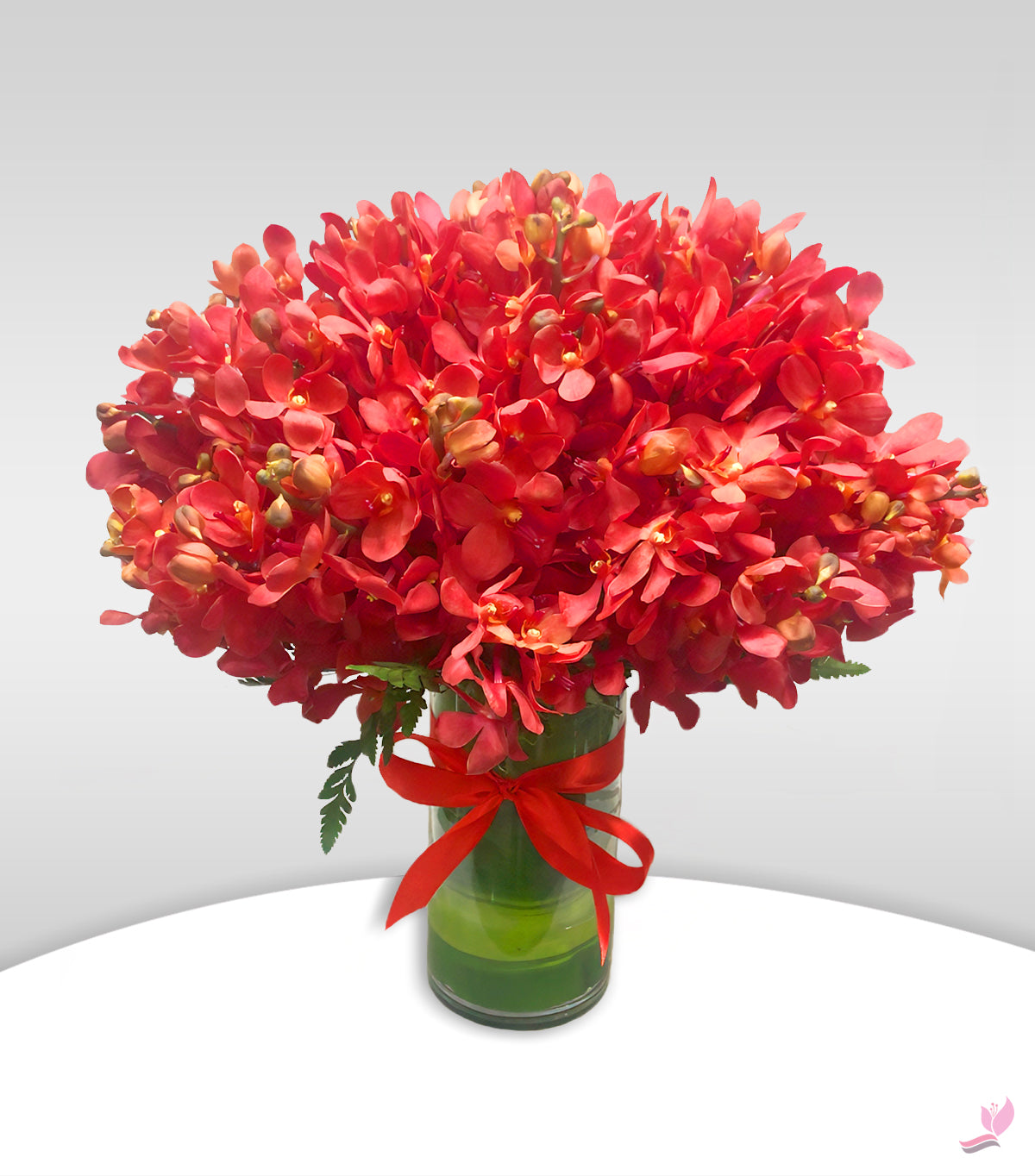 Vibrant Red Mokkara Orchids Bouquet for Elegant Arrangements & Special Occasions